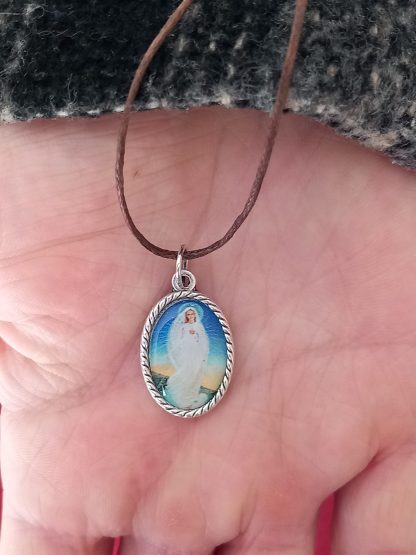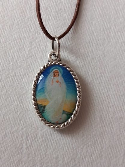La première face de cette magnifique médaille de la Flamme d’Amour est « Splendide rayon de l’Aurore » dont l’image est très connue en Europe de l’Est. L’autre face est Jésus en croix « Toi, au moins, donne-Moi des âmes !» dont l’image à suscité des miracles.